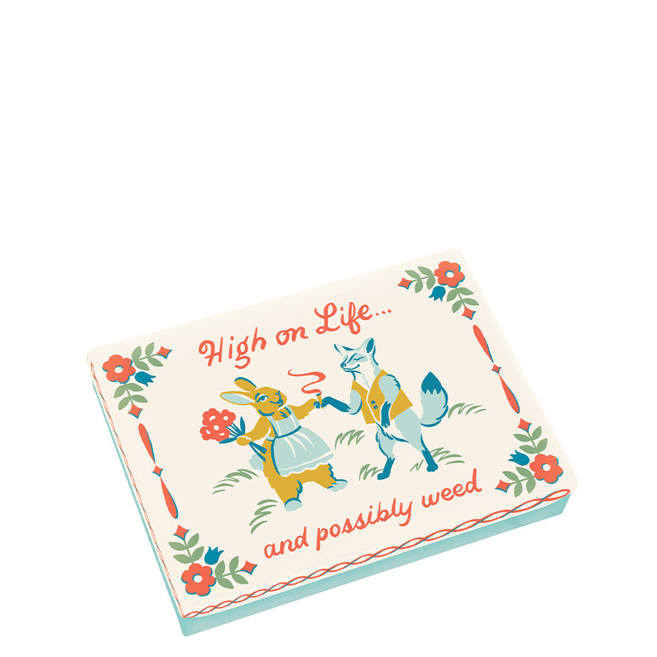 Pocket Boxes from BlueQ are the perfect size for little things that need a home. These slim tin boxes, with colourful illustrations and cheeky messages on front and back, are fun to display but also fit nicely in your pocket, desk drawer, handbag, or knapsack.