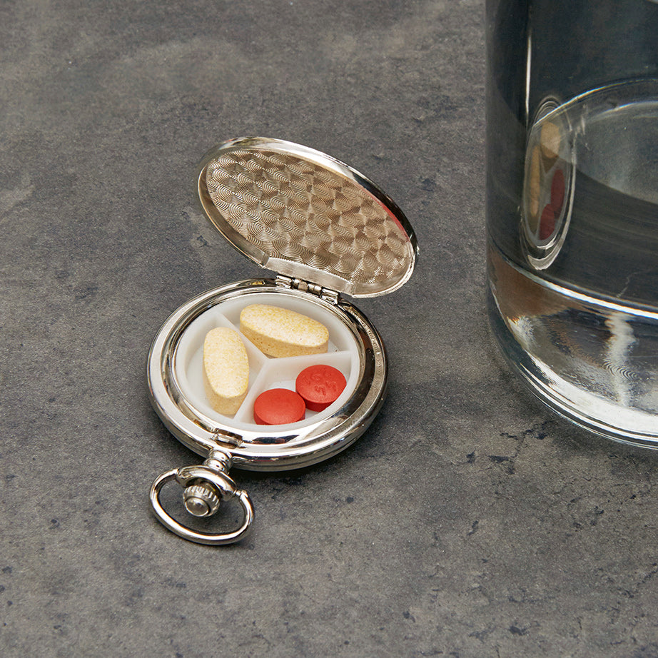 Shaped like a pocket watch, Kikkerland's Pocket Pill Case is a clever way to keep pills and vitamins with you when you're out and about. Open it up and inside there's a divided compartment to keep everything organized.