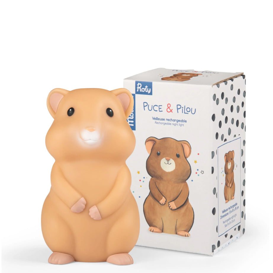 Decorative by day, soothing by night, Pilou and Cacahuète from Moulin Roty's Puce & Pilou Collection help children drift off with their gentle glow. These rechargeable lights can be adjusted for three levels of brightness.