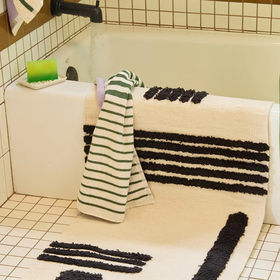 Every rug from Quiet Town is like a piece of functional art for your floor. Hand woven in India by skilled weavers, the rugs are created to fulfill founder's Lisa and Michael's mission to create sustainable, thoughtful, beautiful things for your home. Inspired by the "big nature" around them the Reyes Rugs are named after Port Reyes, Lisa and Michael's favourite Northern California quiet town. Made using a kilim technique with high-pile woven stripes, they add a graphic element to your floor. Reyes Rugs are made of 100% sustainably sourced cotton which dries quickly and is soft and plush under your feet. The Tam and Dipsea Rugs are multi-textural and made with 100% recycled polyethylene. This recycled fibre is able to withstand moisture and are perfect for outdoor or indoor use.