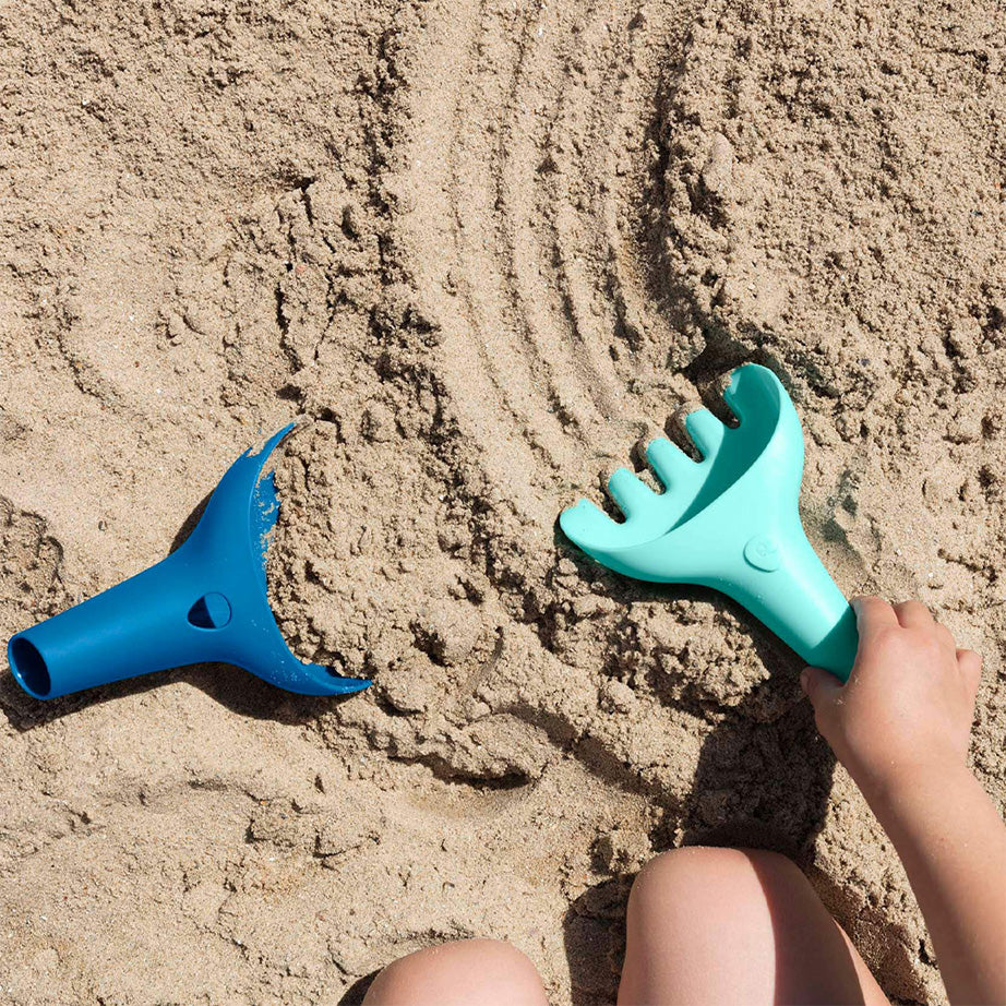 Dig, rake, sift, and pour with the versatile Raki from Quut. This two piece tool can be used as a rake, scoop, or digger in the garden or at the beach. Made of sturdy but lightweight plastic, it clicks and snaps together for easy transport and storage.