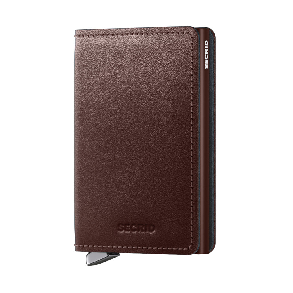 Secrid's Premium Dusk Collection Slimwallet is a reinterpretaion of their best-selling wallets with enhanced new features and high-quality details. Smooth high-quality Italian leather is tanned by Tuscan leather artisans, La Bretagna, a family-owned business that is a pioneer in the sustainable production of vegetable-tanned leather. Plant-based dyes provide a deep, rich colours and a subtle shine finish. The metal lever is made from durable stainless steel metal specially crafted for this collection. Designed in the Netherlands to address this new era of technology, the innovative and stylish Secrid wallets protect both your privacy and your money. Each wallet includes the ultra-thin aluminum Cardprotector, which protects your RFID-enabled chip cards (e.g., credit and debit cards) from wireless theft and protects against bending and breaking. Slide cards into the Cardprotector, and with a simple pull on the tab your cards slide out in a convenient layered arrangement for easy selection. The interior of the wallets provides additional space for a few more cards, paper money, receipts, business cards, or coins. Ideal for travel, all Secrid wallets are compact and guard against the reach of digital pickpockets.
