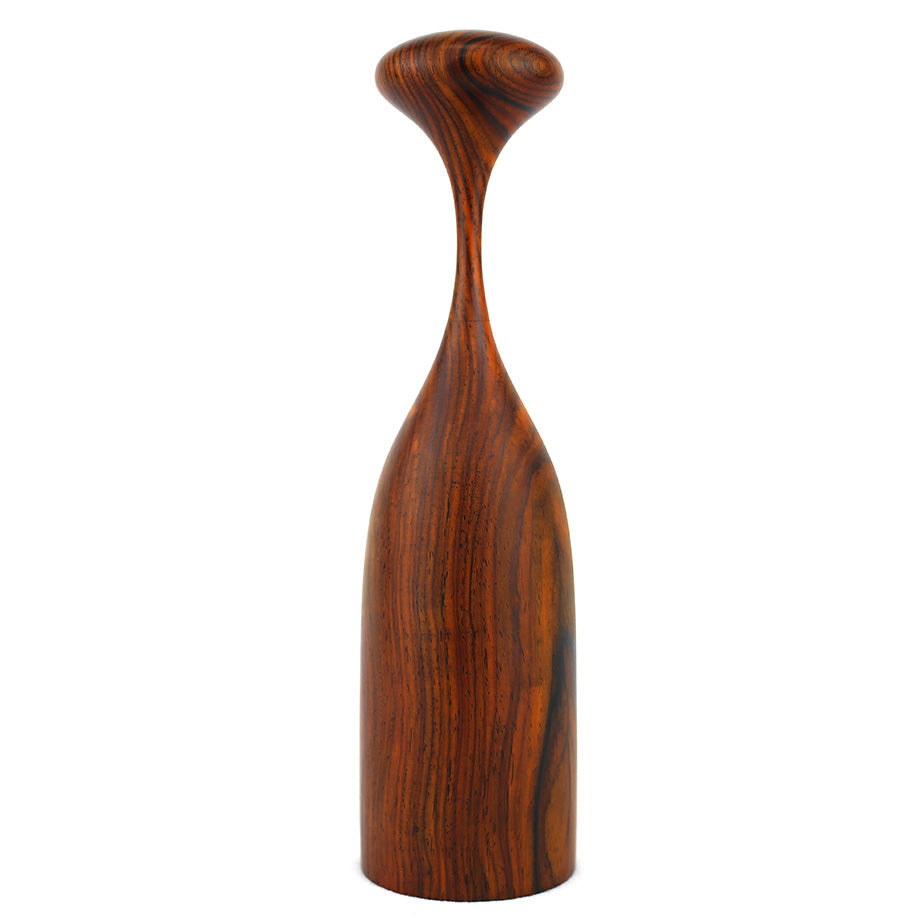 The spectacular Serratus Pepper Mill is both a beautiful object and a thoughtfully designed kitchen essential. Brothers Shawn and James Kay of Tantalus Design created these virtually indestructible mills which are crafted in their studio workshop in North Vancouver. Meticulous woodworking brings out the beauty of the wood. The base and the top knob, which begin production as a single solid block of wood, are crafted separately and reassembled to form the grain-matched body of the mill. While it appears to be a single continuous piece of wood, a simple twist of the top grinds your pepper. Under its delicate appearance is a solid stainless steel shaft, ensuring a sturdiness that will allow these mills to last a lifetime. The high-quality Danish ceramic grinding mechanism is also compatible with rock salt, wet salt, and may be used for dry herbs and spices. Fill your the mill from the bottom using the built-in funnel, then adjust to your preferred coarseness.