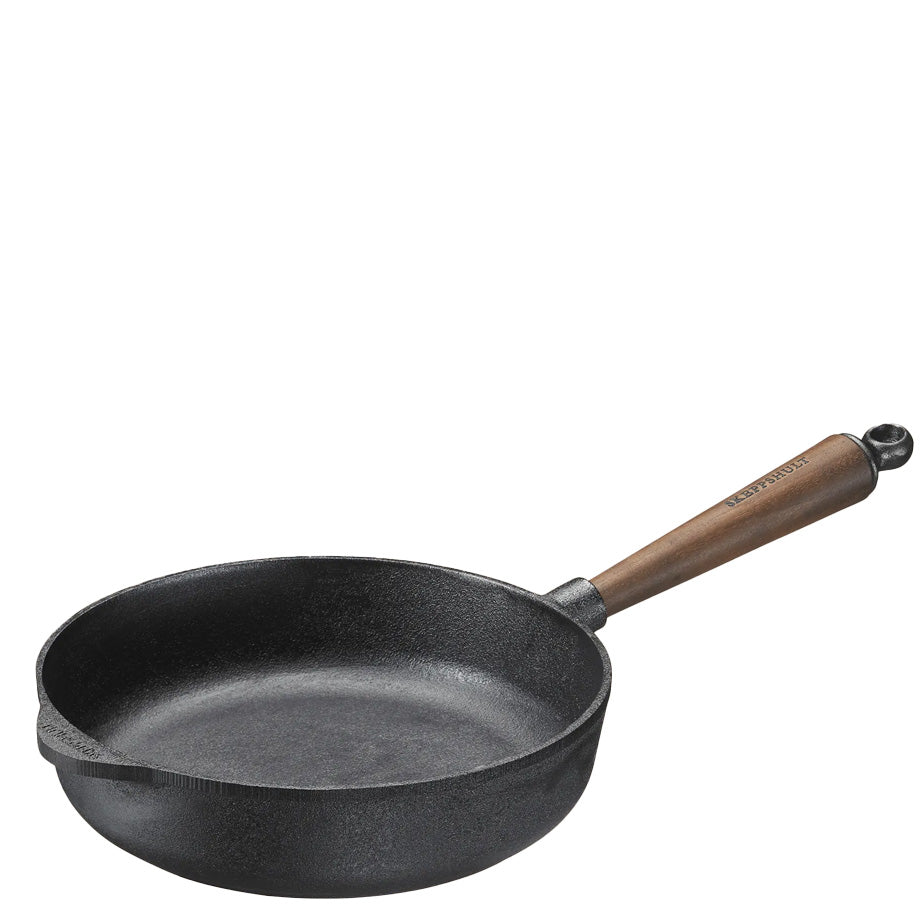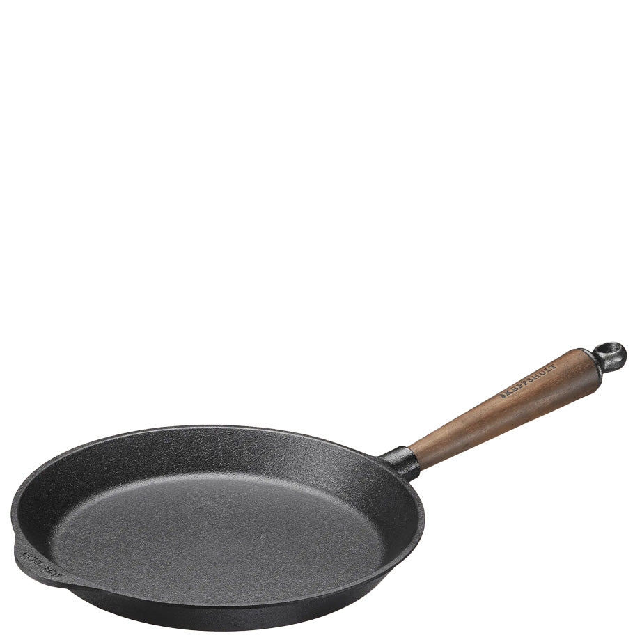 Handcrafted in Sweden since 1906, Skeppshult Cast Iron Skillets are designed to perform and made to last. These are pans that you can pass down and are the choice of cooks who care about what lasts. Sustainably made in Sweden, all of the cast iron is from 100% virgin iron ore. The thick, textured, naturally non-stick pans retain and distribute heat flawlessly, making them perfect for searing, simmering, and bringing out all of the flavour in your dish. Three sizes of skillets are weighted for serious cooking and the beautiful walnut handles stay cool for easy handling.