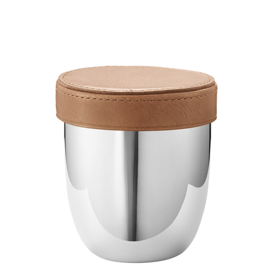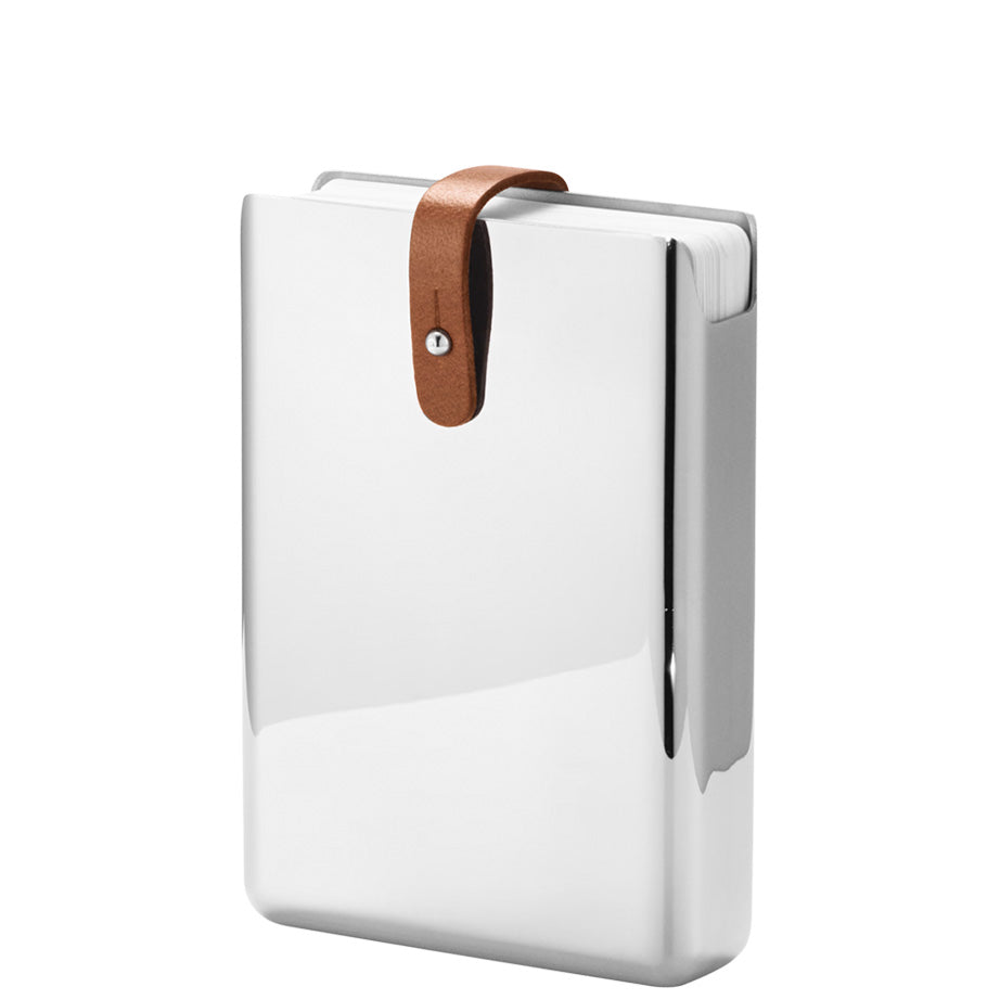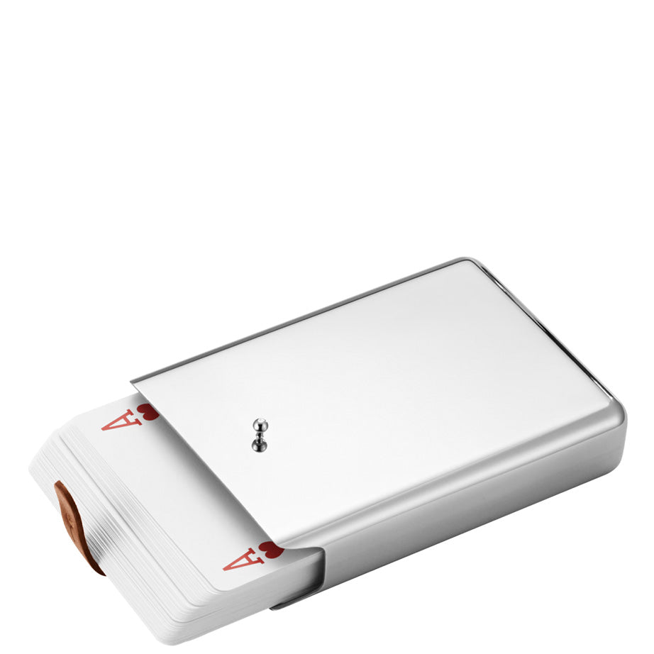 Designer Aurélien Barbry offers sophisticated luxury with beautiful yet functional objects in his Sky Collection for Georg Jensen. Mirror-polished stainless steel is elegantly accented with leather to create an eye-catching and timeless look. The Dice Cup, Dice Case, and Card Game are perfect accents for the stylish games room or study.