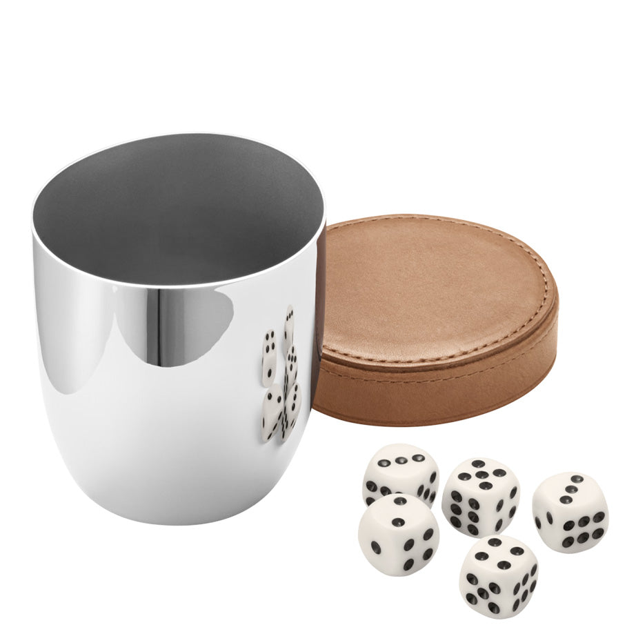 - Dice Cup: Mirror polished stainless steel cup with leather top. Comes with 5 dice