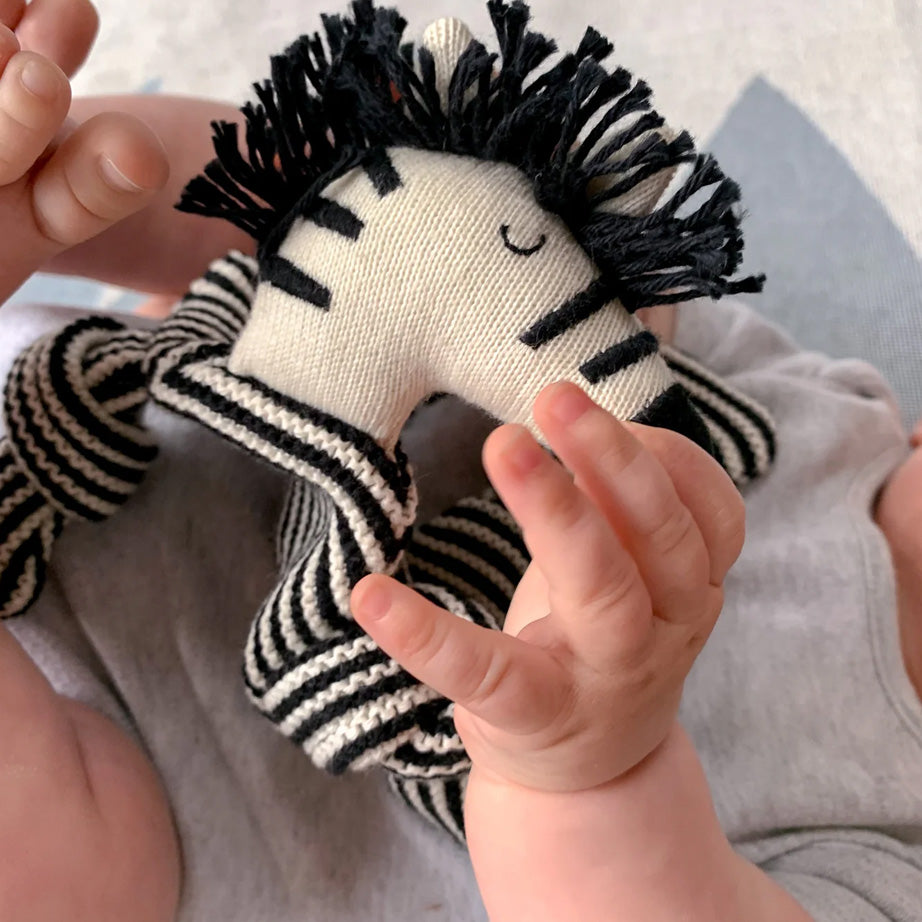Give the gift of cozy, comforting companionship with a Sophie Home Comforter. Made with soft, tactile cotton knit, they provide the perfect snuggles for little ones as they learn to seek out comfort on their own.