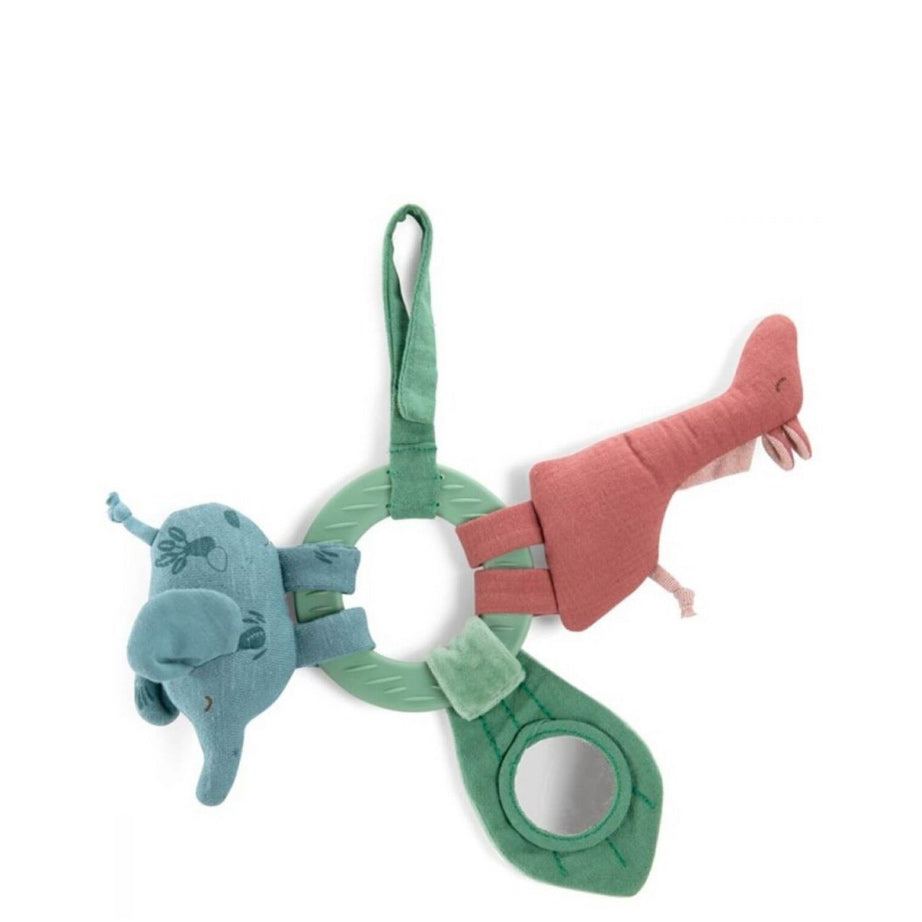Babies will love these savannah-themed toys from Moulin Roty's Trois Sous mon Baobab Collection. With so many sensory surprises for baby to explore and velcro straps or ring attachments, these pretty playthings will keep baby busy at home or on-the-go.