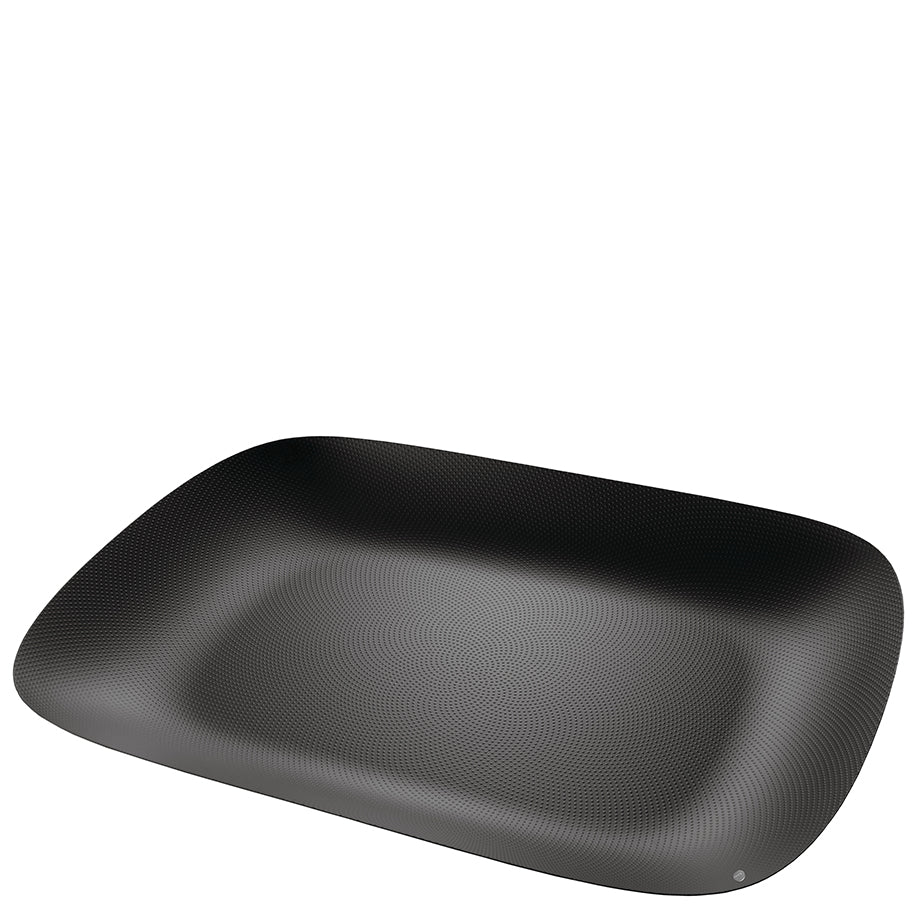 Bowls and trays in deep, rich red and inky, jet black with a beautiful granulated surface make up Alessi's Texture & Colors Collection. The double-walled Double Bowls were designed by Donato D'Urbino and Paolo Lomazzi. Hollow on the inside, they are very lightweight despite their substantial look. The Moiré Trays, designed by Marcel Wanders are the perfect compliment to the bowls and are standouts for serving.