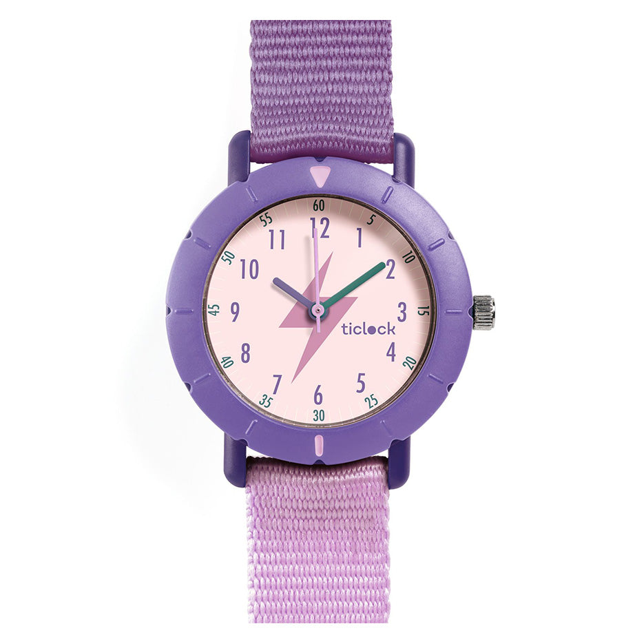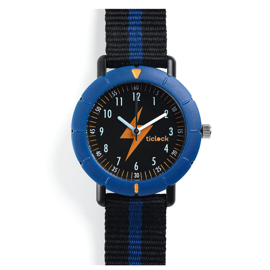 Keep track of time with a Djeco Ticlock Sport Watch. Its rotating bezel and clear markings make telling time easy. The shockproof case, comfortable fabric strap, and water resistance design make it perfect for kids with an active lifestyle.