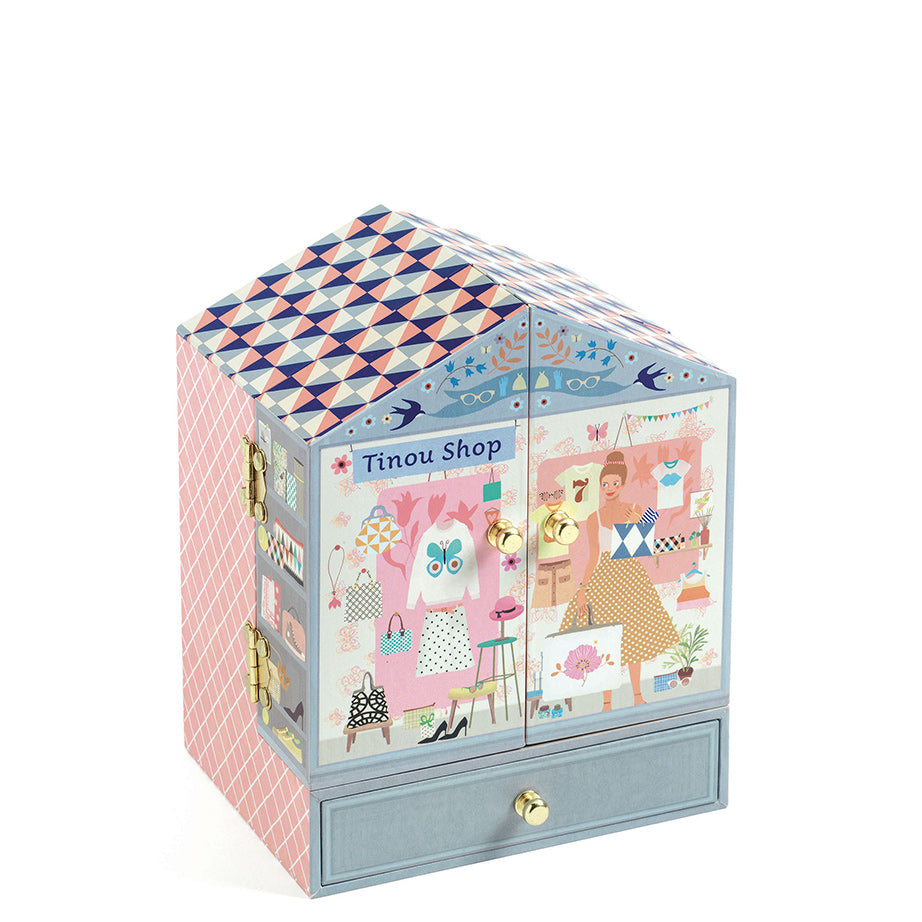 Open Tinou's Shop and watch her dance! The detailed illustrations that decorate this lovely music box will charm and the drawers make it the perfect place to safely store small treasures.