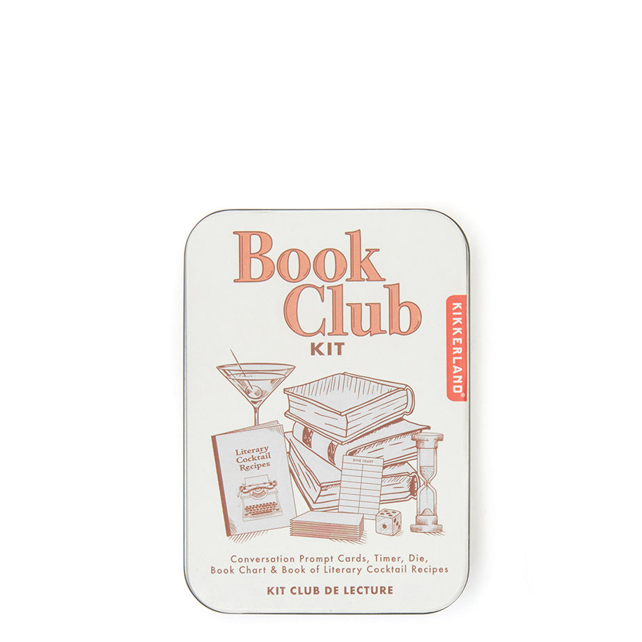 - Book Club Kit: Conversation starter cards, timer, die, book chart, literary cocktail recipe booklet