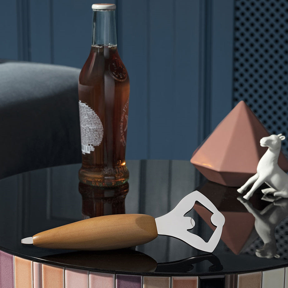 Alessi welcomes back as part of their Values Collection a favourite bottle opener – Ercolino – designed by Andrea Branzi. Originally designed in 1999, the elegant lines of the turned wood and stainless steel opener makes this everyday object a treasure to use.