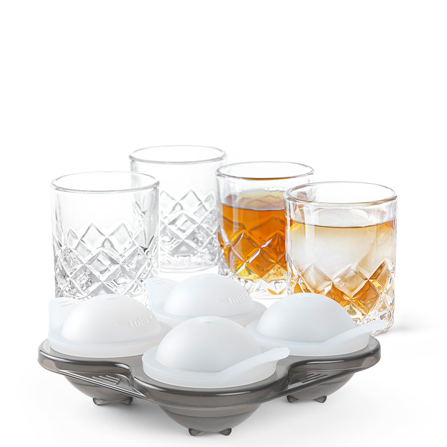 Keep it cool with Yarai Shiver Ice Ball Shots from Final Touch. The set comes with four shot glasses and an ice tray with lid. The glasses are made from lead-free glass that showcases the timeless Japanese Yarai design which beautifully captures and reflects light. Paired with a 1.5" ice ball tray, this set offers a sophisticated way to serve chilled spirits. Perfect for enhancing fine liquors, tasting flights, and cocktail samplers, it brings a touch of artistry and grace to every pour.