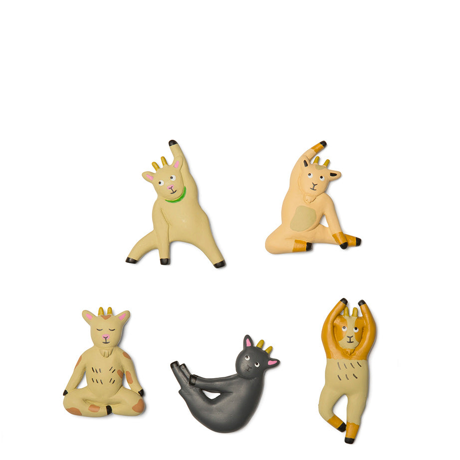 Designed by Eiko Simada, Cat Yoga Magnets from Kikkerland are purr-fect for any cat lover! Five hand-painted felines in different yoga asanas playfully add a touch of zen to any refrigerator or magnetic board. Or if goat yoga is your thing, you'll love Goat Yoga Magnets. They are just the thing for to keep things tidy and remind you to stay limber!