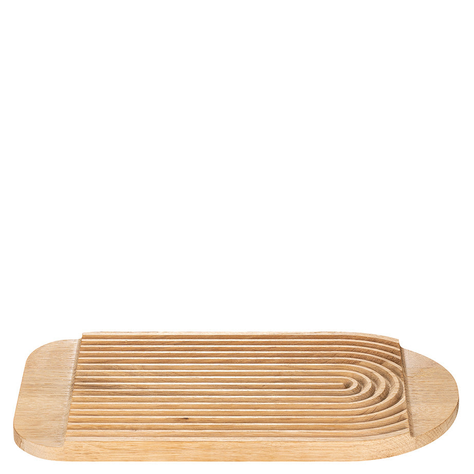 The Blomus Zen Cutting Board-Tray is a dual-purpose kitchen accessory crafted from high-quality untreated solid oak, boasting a sleek geometric design that will complement any kitchen decor. Designed by David Meier of Studiomeiid, the boards feature deep grooves on one side that effectively capture crumbs during cutting. Flip it over and the board turns into a sophisticated serving tray, complete with slim raised edges and convenient side handles for easy holding.